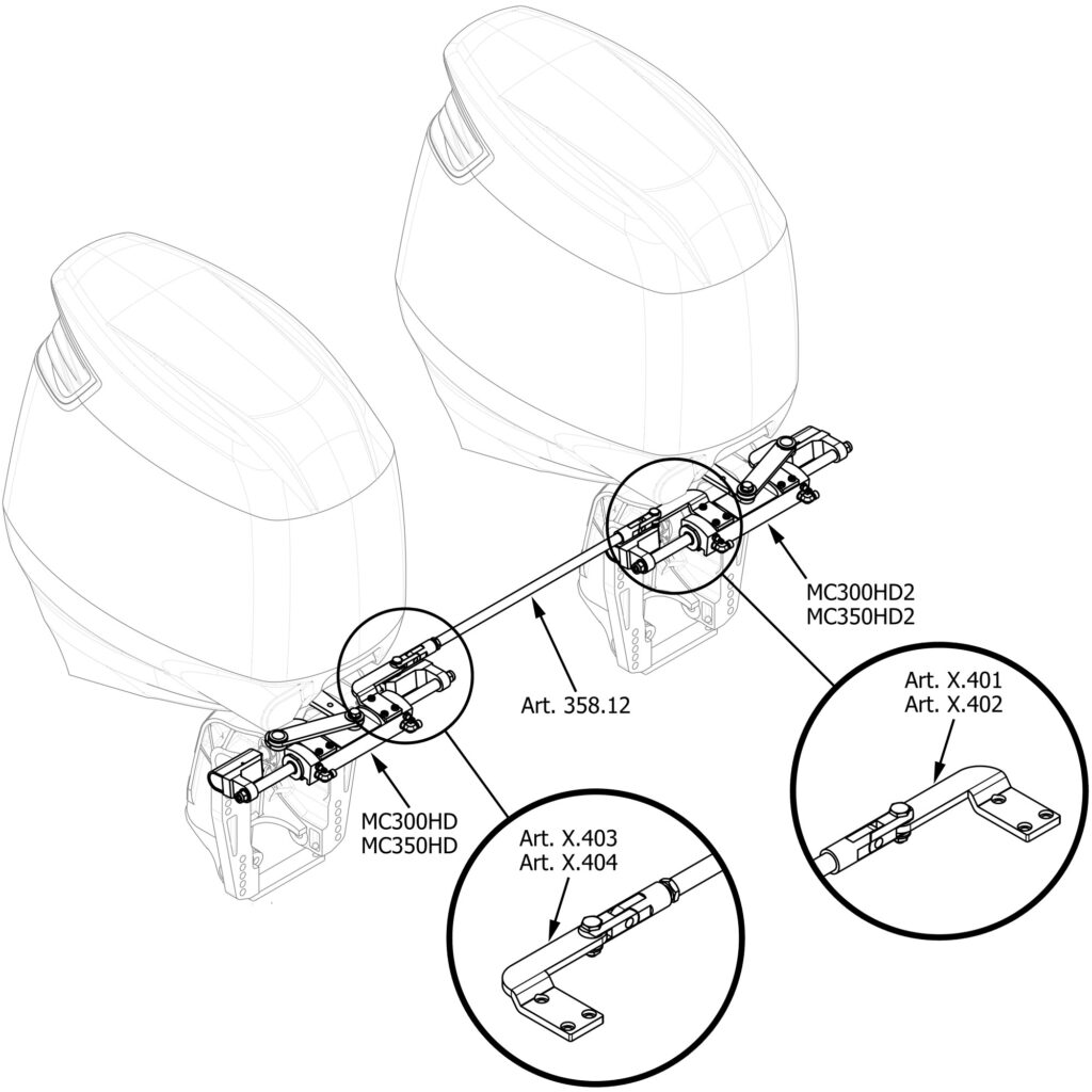 Thanks to its articulated connection system, this tie bar permit to tilt both engines in a singular simultaneous way.