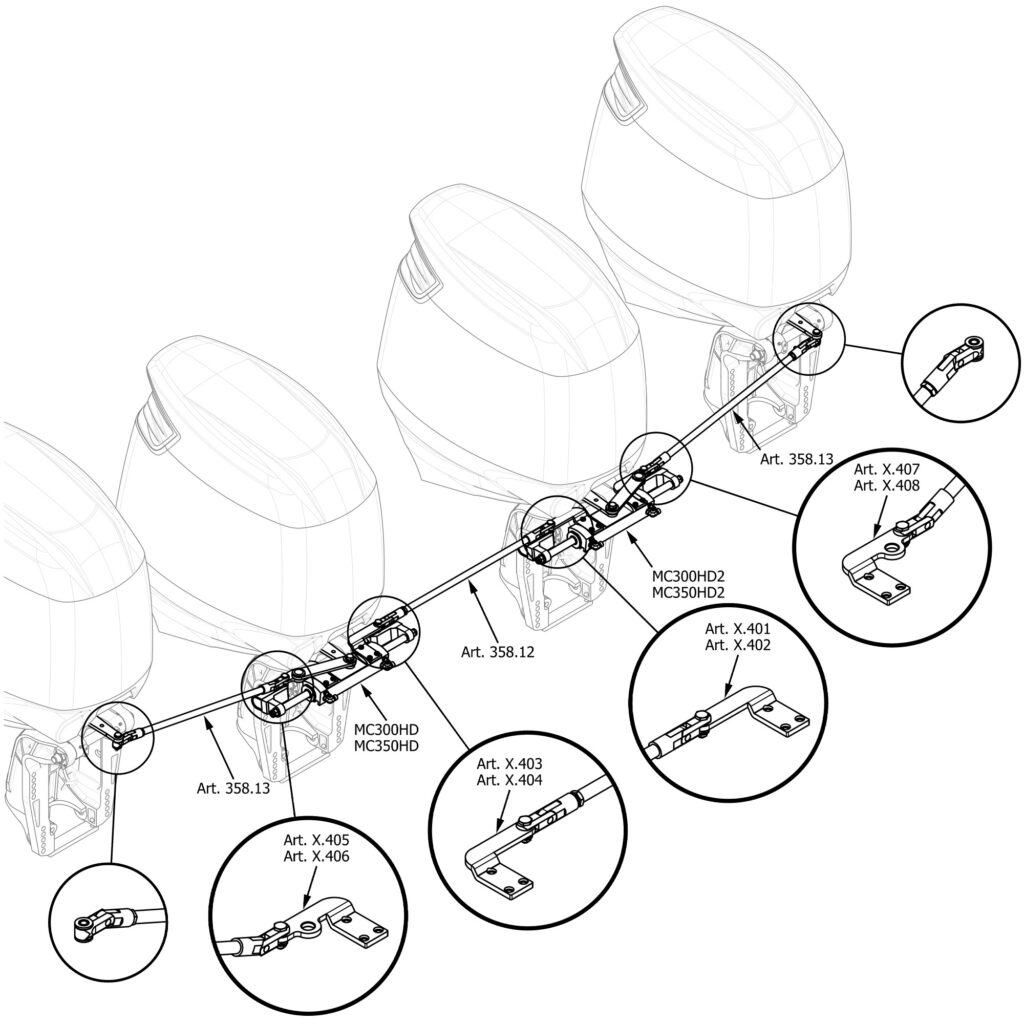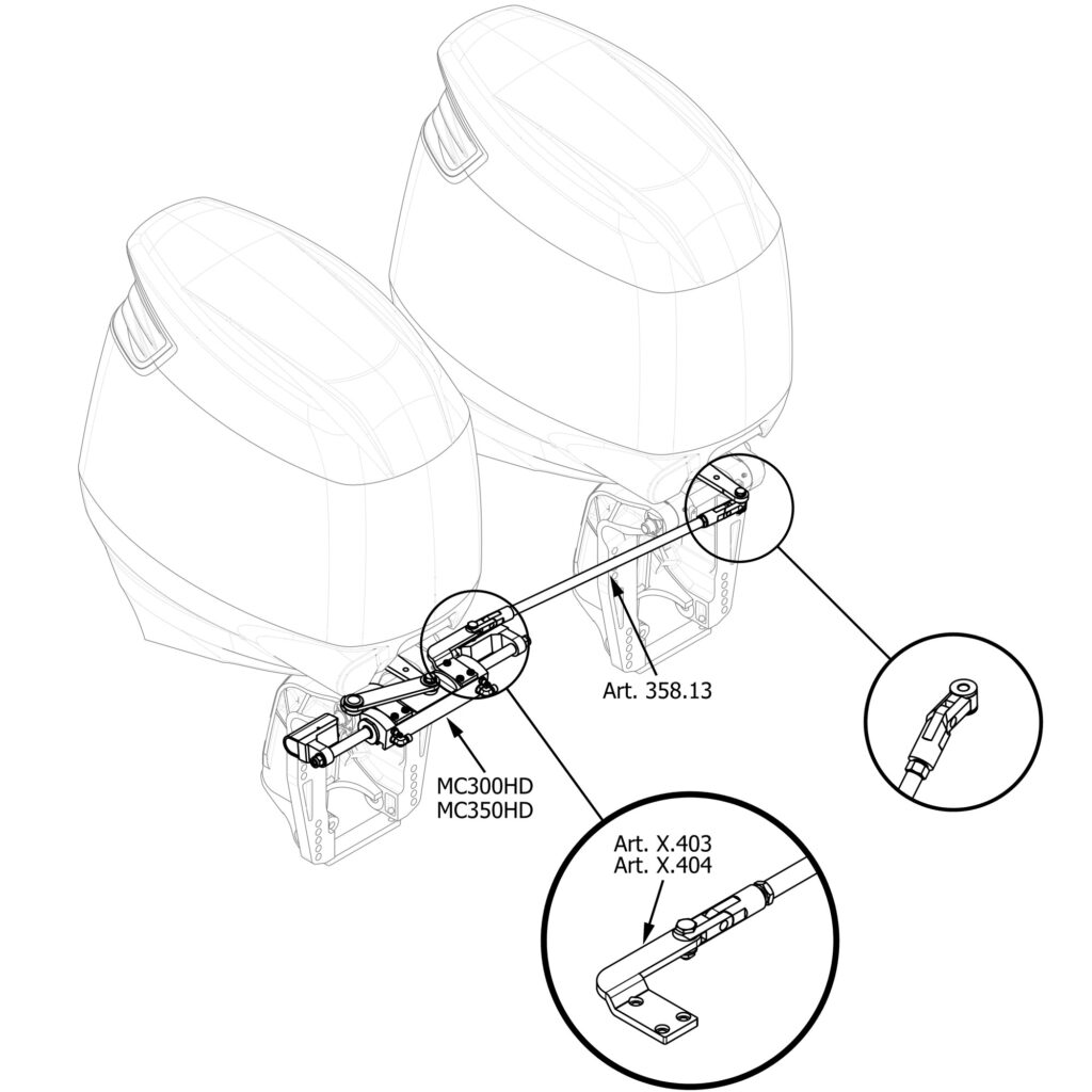 Thanks to its articulated connection system, this tie bar permit to tilt both engines in a singular simultaneous way.