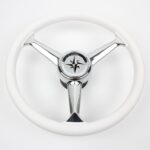 Volante in acciaio inox con impugnatura poliuretano bianco.